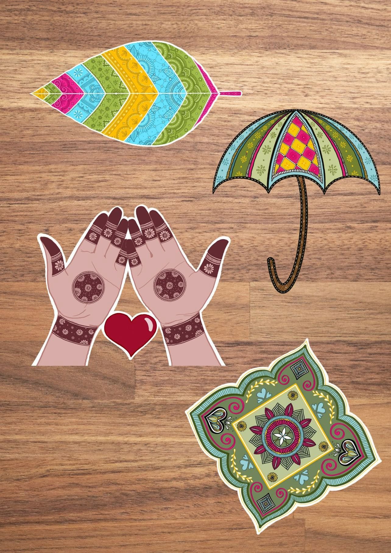 August 2024Worked with client to create two custom mehndi stickers. This included one set of stickers that had the couples initials in the center.